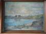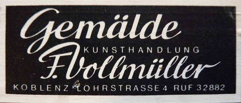 Gemälderückseite mit Künstlersignierung, Rahmungsfirma + Ausstellungsaufkleber